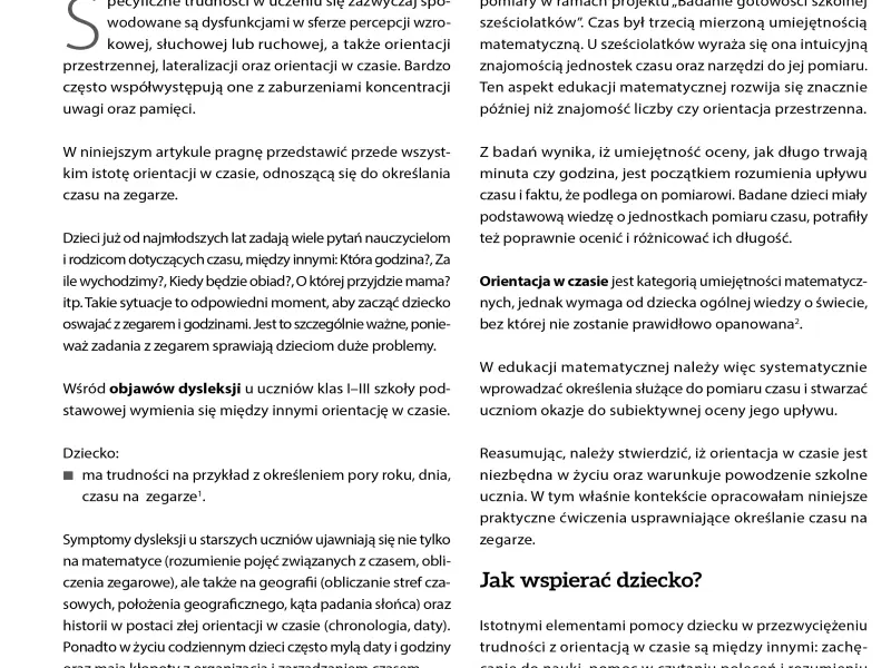 W niniejszym artykule pragnę przedstawić przede wszystkim istotę orientacji w czasie, odnoszącą się do określania czasu na zegarze.